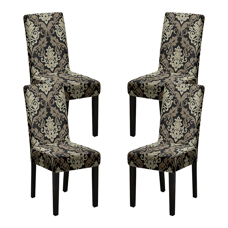 Stretch Spandex Dining Chair Cover 4 Pcs Set, Geometric Printed Stretch Chair Protector Cover Seat Slipcover with Elastic Band for Dining Room,Wedding, Ceremony, Banquet,Home Decor