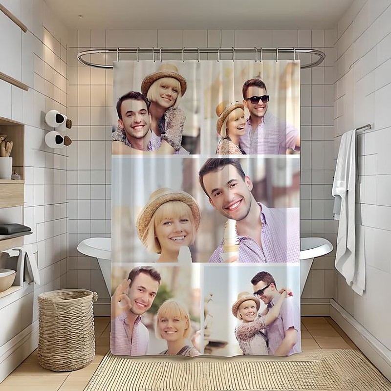 Personalized Photo Shower Curtain with 12 Hooks- Custom Wedding Gift for Couple Wedding Gift Bathroom Decor Fabric Waterproof Washable Upload Your Image Photo Picture for Bathroom Hotel