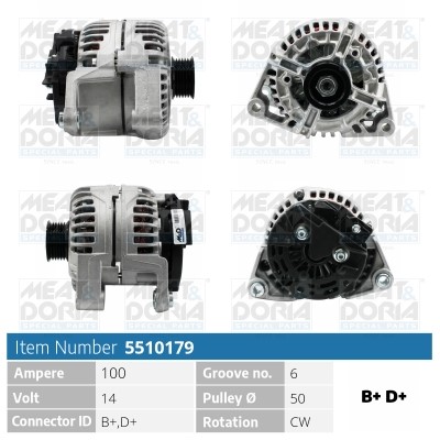 Laturi 14V 100A Meat & doria 5510179 - opel, vauxhall - OE 09117934, 093174497, 9117934