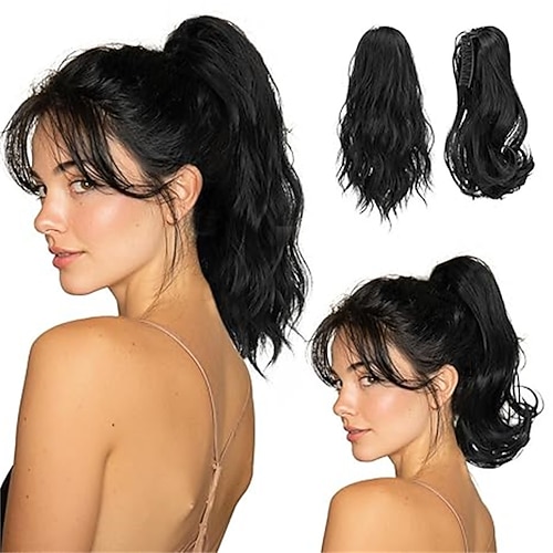2er-Set Haarverlängerungen mit Haarspange für kurze, gewellte und lockige Pferdeschwänze aus Kunsthaar für Damen (12 und 14 Zoll).