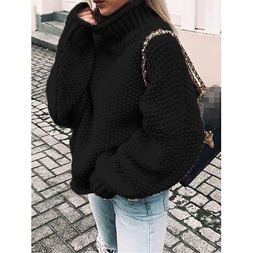 Per donna Pullover Maglione Moda Informale Morbido Tinta unica A coste A collo alto Oversize Manica lunga Top regolari Maglia Giornaliero Per uscire Fine settimana Nero Rosa Autunno Inverno
