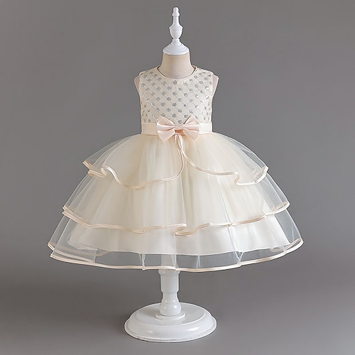 Abito da damigella d'onore bambina Ragazze Abito formale Abiti da sposa Feste Matrimonio Formale Moda Adorabile Principessa Abito per la Prima Comunione Patchwork Rete Tinta unica Senza Maniche