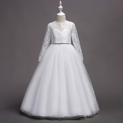 Abito da damigella d'onore bambina Ragazze Abito formale Abiti da sposa Feste Matrimonio Formale Adorabile Principessa Bello Abito per la Prima Comunione Patchwork Rete Tinta unica Manica Lunga