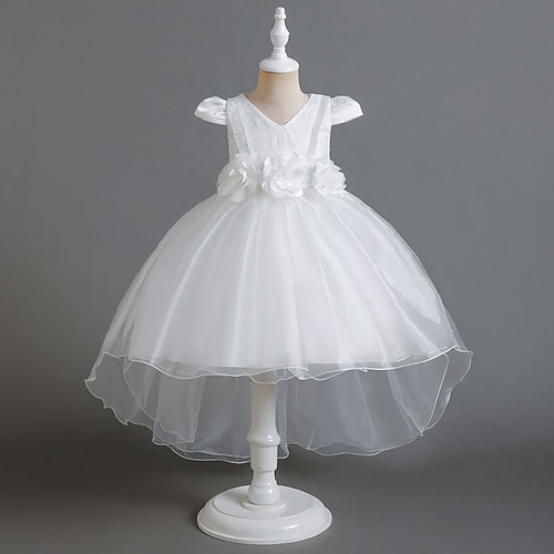 Abito da damigella d'onore bambina Ragazze Abito formale Abiti da sposa Feste Matrimonio Formale Moda Adorabile Principessa Abito per la Prima Comunione Patchwork Rete Tinta unica Maniche Corte