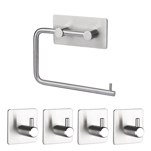 il set di accessori per il bagno in acciaio inossidabile include portarotolo multifunzione e ganci per accappatoio 4 pezzi nero opaco senza punzonatura e argento spazzolato con adesivo a forte