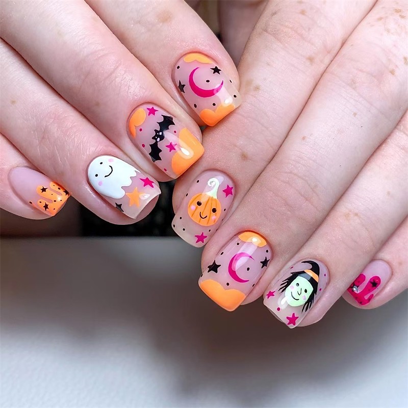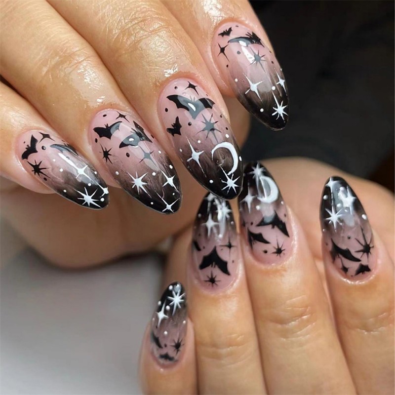 24 Pcs Halloween Press on Nails Long Stiletto Fake Nails Red Black Gradient False Nails with 3D Design Goth Acrylic Nails Press ons Halloween Glue on Nails Full Cover Reusable Stick on Nails for Women