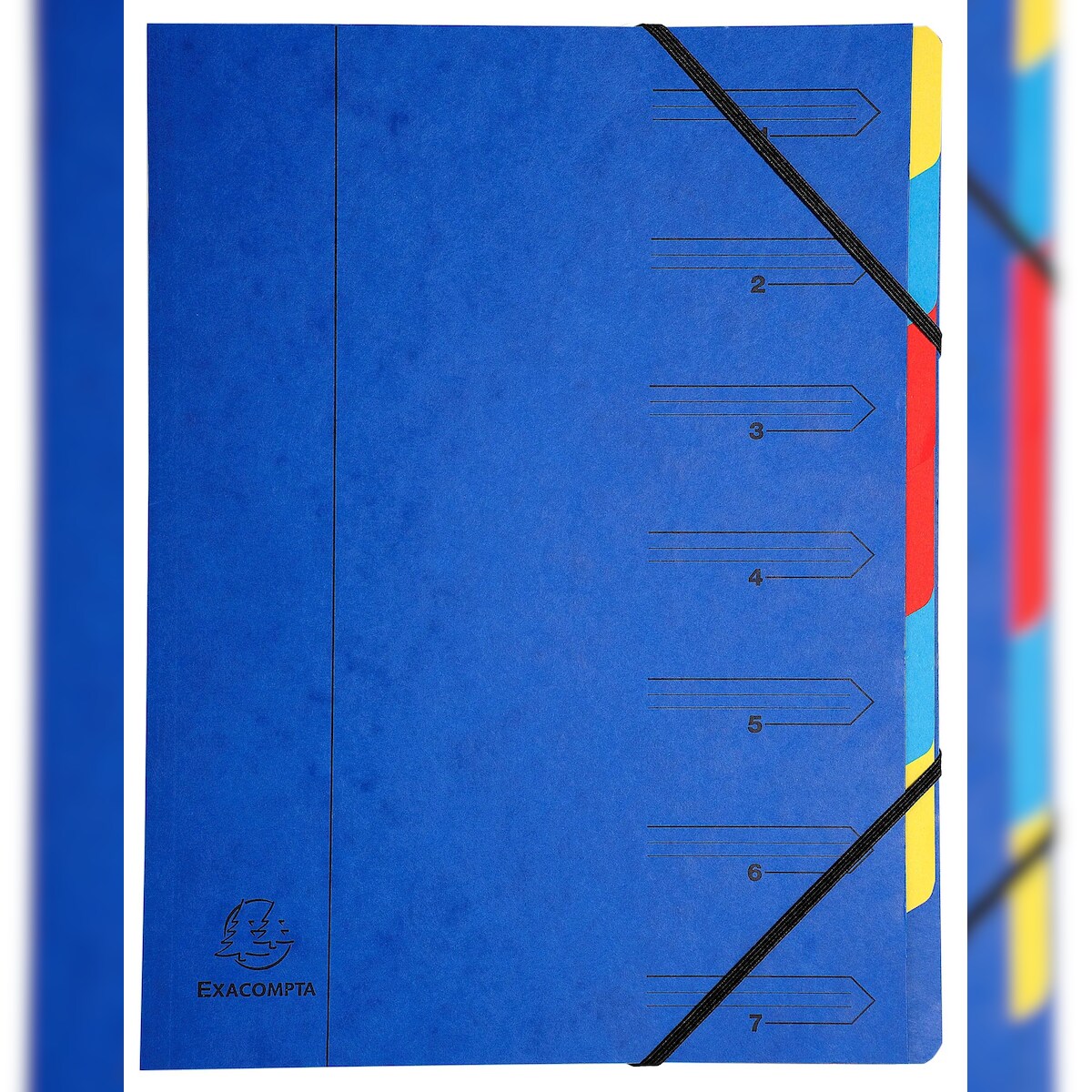 Exacompta 54072E 12x Ordnungsmappe aus Colorspan-Karton 355g/m2 mit Gummizug, 7 Fächern, für Format DIN A4 - Blau