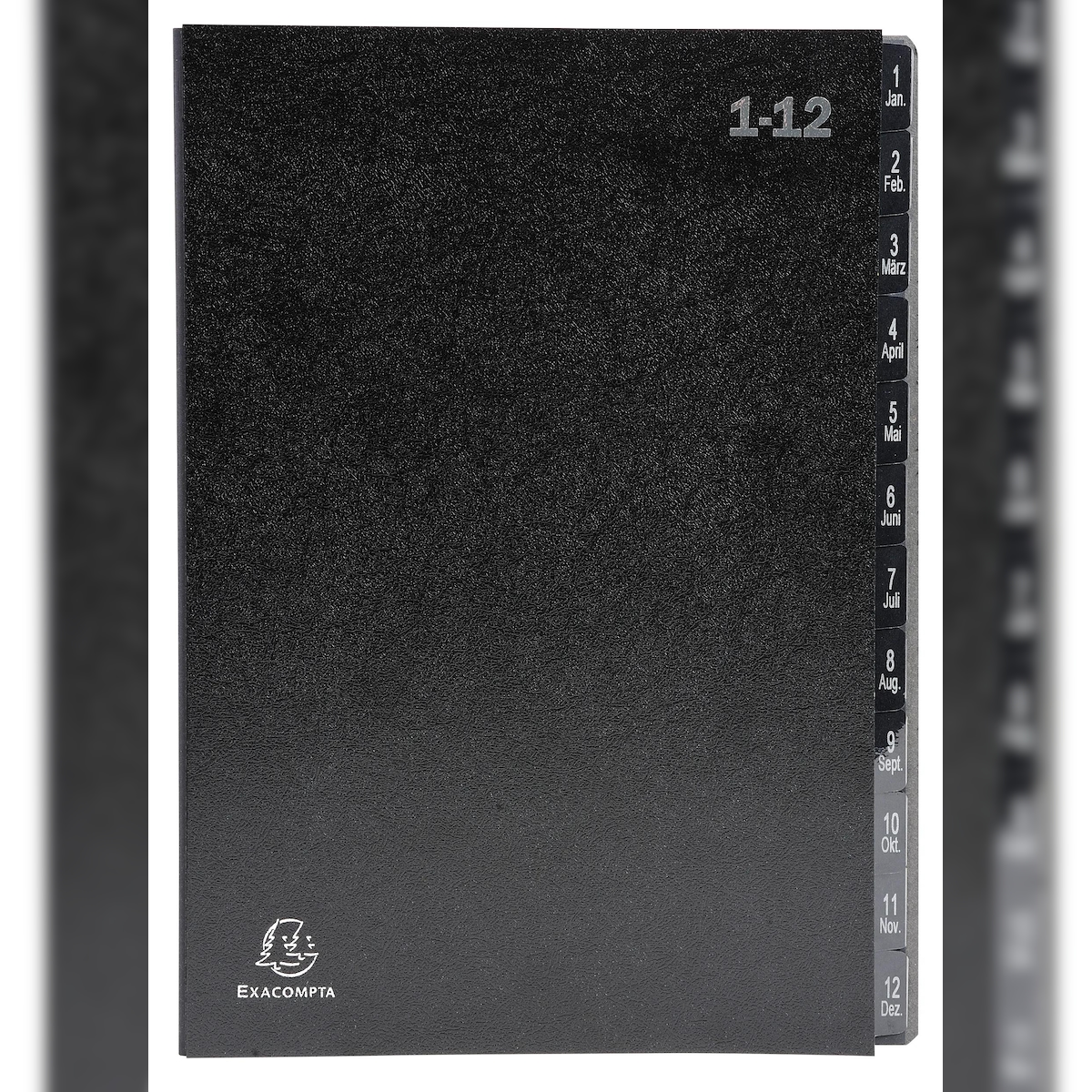 Exacompta 57012E 12x Pultordner Ordnungsmappe mit 12 Fächern aus Recycling-Karton, numerisches Register 1-12, für DIN A4 - Schwarz