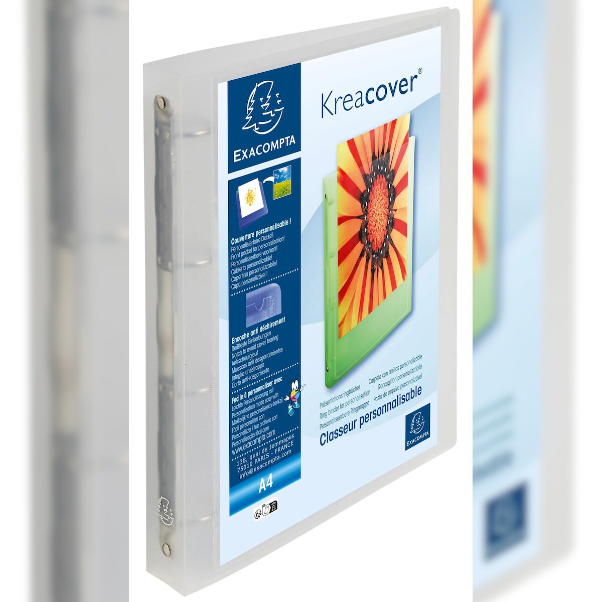 Exacompta 51568E 12x Ringbuch aus festem PP 1000µ, 4 Ringe 30mm, Rücken 40mm, 32x26,8cm für DIN A4 MAXI - Chromaline Kreacover - Transparent