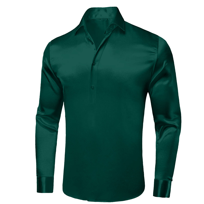 Men's Shirt Satin Shirt Dress Shirt Casual Shirt Button Up Shirt Prom Shirt Plain Formal Wedding Black White Royal Blue Green Long Sleeve Lapel All Seasons Clothing Apparel