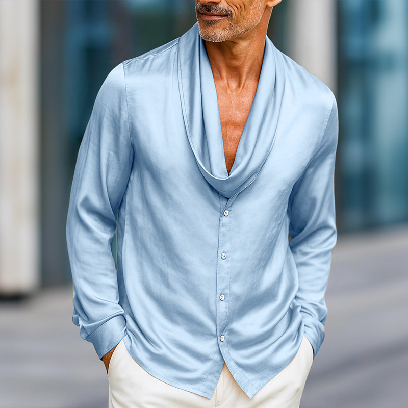 Men's Shirt Satin Shirt Dress Shirt Casual Shirt Button Up Shirt Prom Shirt Plain Formal Wedding Black Wine Royal Blue Gold Long Sleeve Shawl Collar All Seasons Clothing Apparel Wrap
