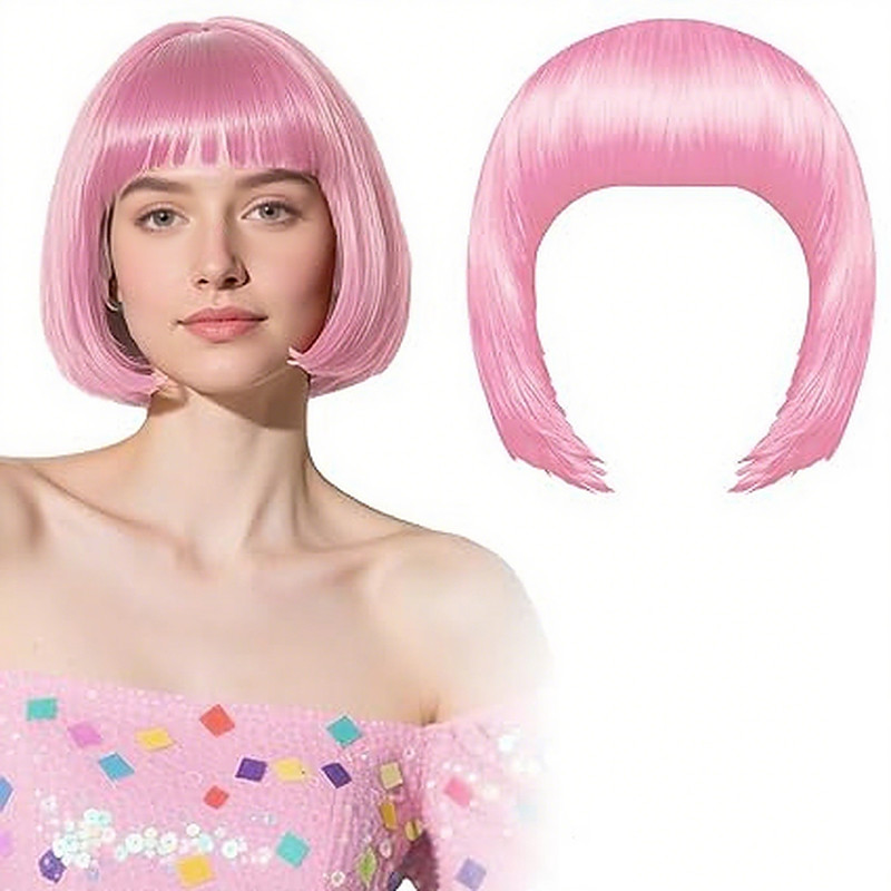 Carnival Wig 2026 Pink Black Blue Straight Bob Short Synthetic Festival Wig Mardi Gras Parade Cosplay Costume Hair for Women