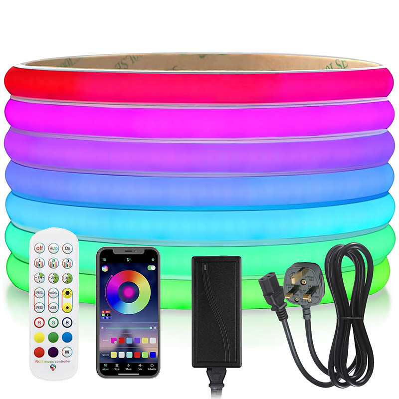 RGBIC Waterproof IP67 10M Flexible COB LED Strip Light 24V WS2811 Pixel Cuttable Outdoor 24-key RF Bluetooth Controller APP Intelligent Color Changing LED Strip Neon White Silicone with Adhesive Back