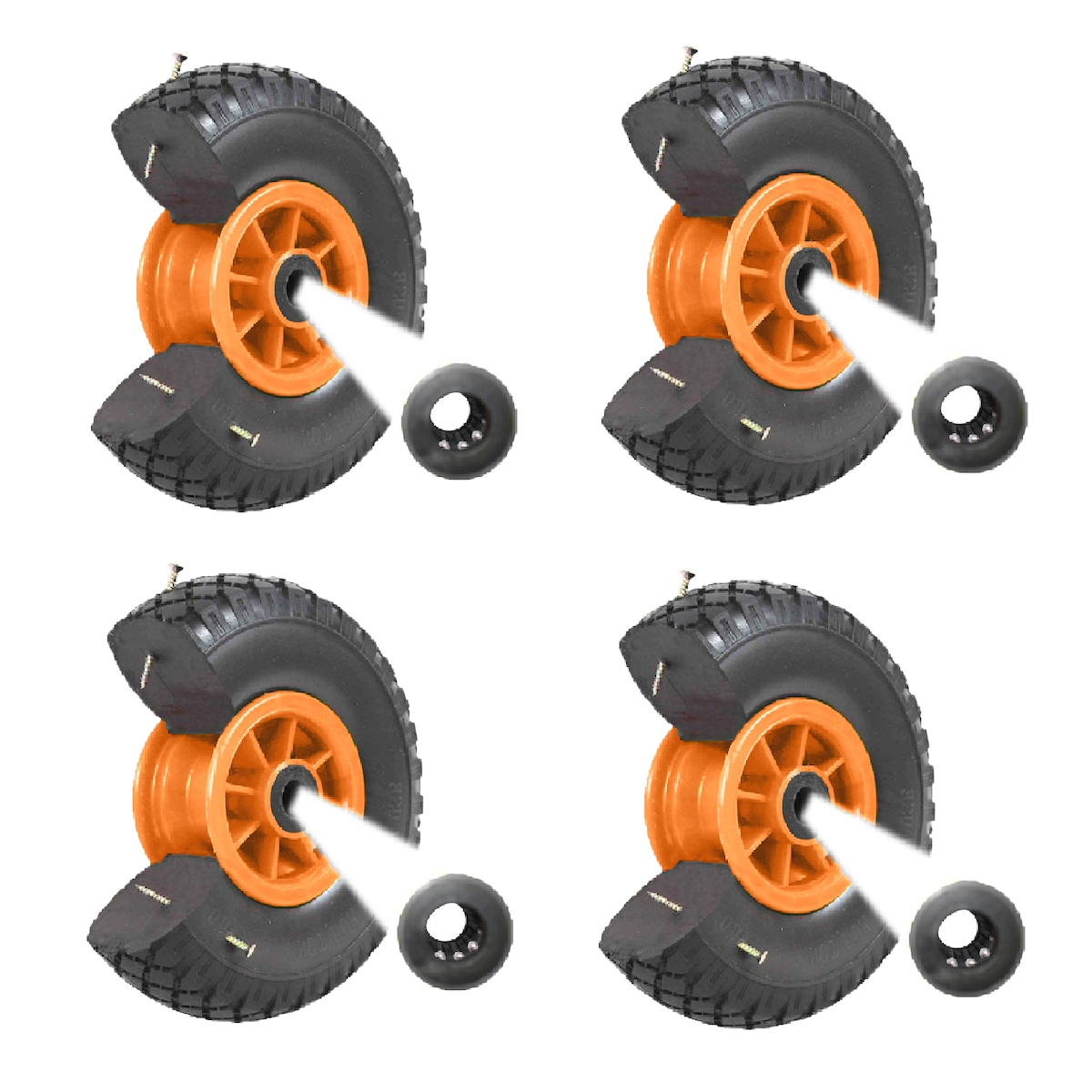 Baumarktplus 4x Sackkarrenrad PU-Rad 260x85 mm 3.00-4 75 mm zentrierte Nabe Ø 20 mm orange Vollgummi Bollerwagen