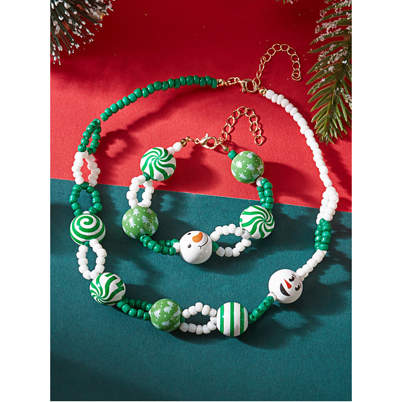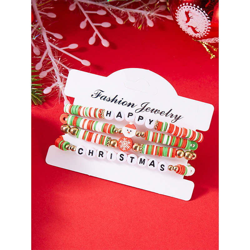 Women's Christmas Beaded Bracelets, Alloy and Acrylic Material, Festive Red, Green, and White Colors, Holiday Jewelry with Snowflakes, Santa and Christmas Tree Charms