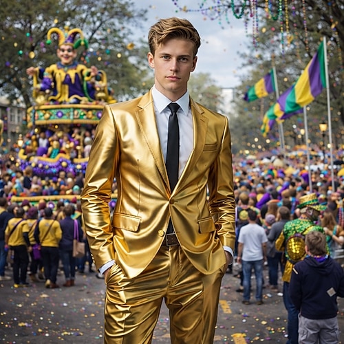 Mardi Gras 2026 Metallisch Disko Hose Outfits Anzüge Blazer Disco Einfarbig Kostüm Herren Maskerade Veranstaltung / Fest Pride Parade Pride-Monat Erwachsene Kostüm