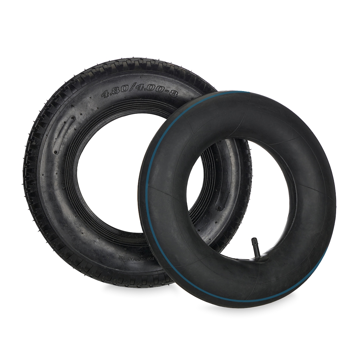 Relaxdays Schubkarrenrad mit Schlauch, Ersatzreifen profiliert, 4.00-8", luftbereift, für Schubkarre, bis 150kg, schwarz