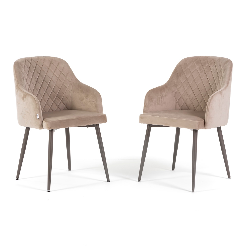 RATTATAN Set aus 2 Samtstühlen für den Innenbereich,hohe Rückenlehne,Metallbeine,ideal für Küche,Esszimmer,Bar oder Restaurant–Beige/Taube–Tessa