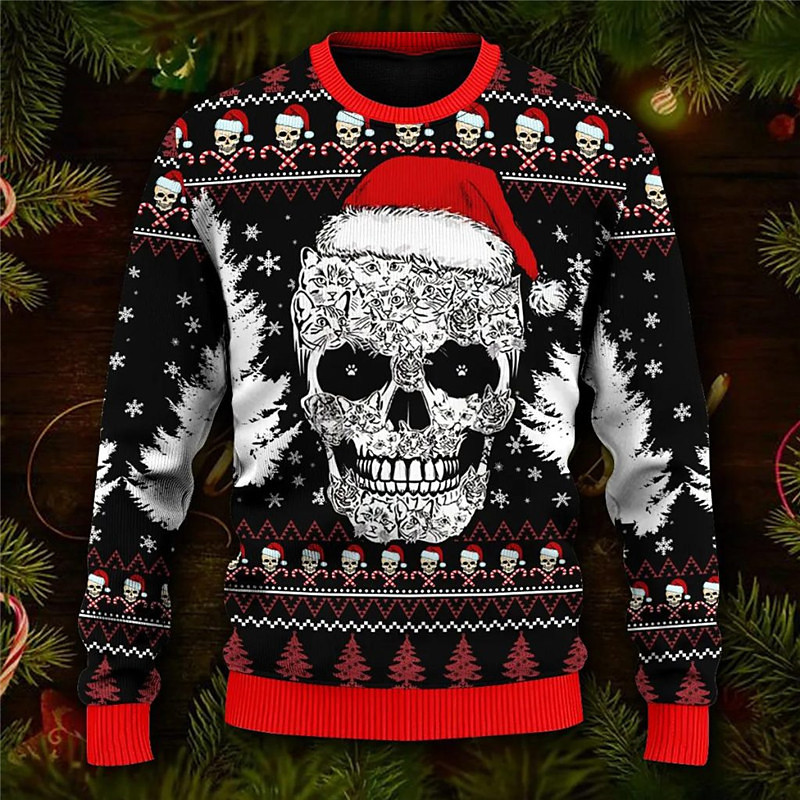 Men's Skeleton Pullover Sweater Jumper Knitwear Crewneck Casual Dark Vacation Daily Festival 3D Print Keep Warm Long Sleeve Spring Fall Winter Red Purple Gold