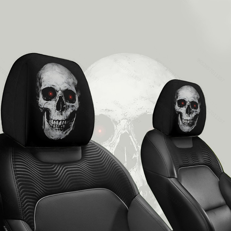 2pcs Spooky Halloween Christmas Car Headrest Covers - Fit for All Vehicles No-Fill Cushionless Design Easy Installation - Funny Automotive Interior Decorations Car Seat Headrest Protectors