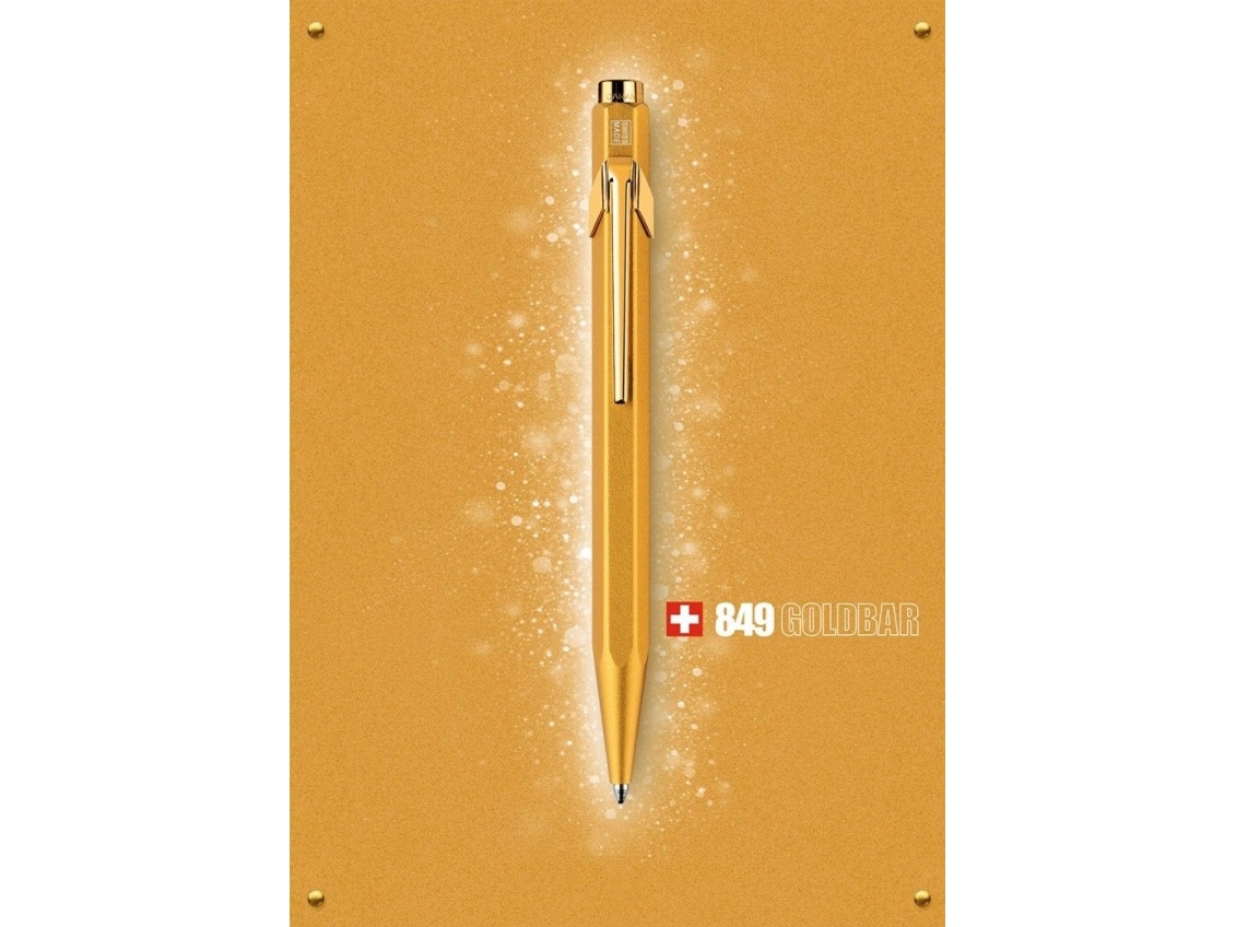 CARAN D'ACHE sisäänvedettävä biros 849 Goldbar, kultainen viivan leveys: M, viivan väri: musta, kuusikulmainen tynnyri - 10 kpl (849.999)