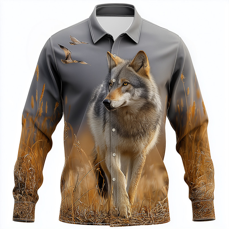 Men's Animal Wolf Nature Landscapes Shirt Button Up Shirt Long Sleeve Vintage Retro Outdoor Casual Hunting Spring Fall Turndown 3D Print Collared Shirts Gray 1# Gray