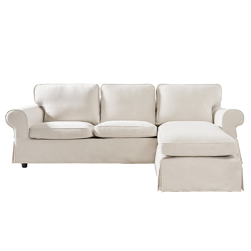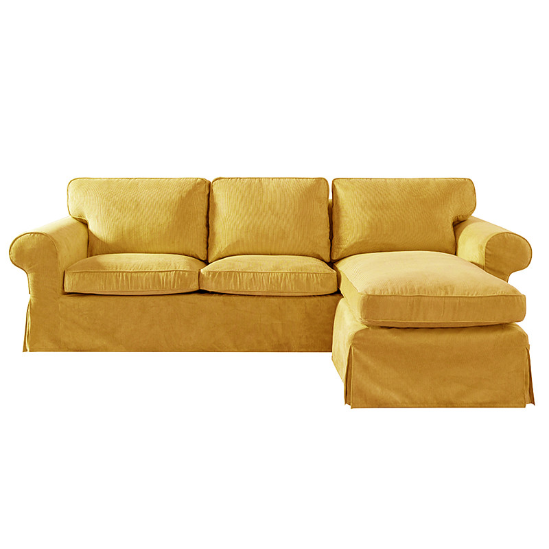 EKTORP 3-Seater Sofa with Chaise Longue Cover, Solid Color Quilted Corduroy Slipcover, Durable Non-Slip Protector for Living Room