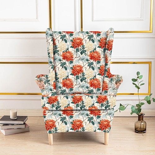 Copripoltrona con schienale alto, copripoltrona in poliestere stampato con motivi geometrici a righe floreali, copripoltrona completo, moderno, pieghevole, alla moda, in stile coreano, coprisedia