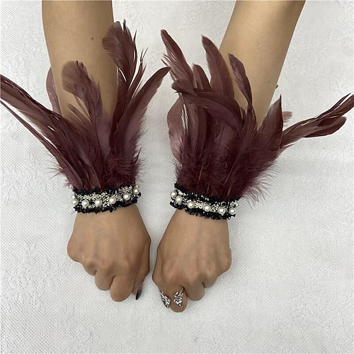 Accessori Samba Carnevale 2026 Rio Carnevale Polsini Piume Nere Donna con Pizzo di Perle 1 Paio di Braccialetti Piuma Naturale Costume per Festival in Brasile