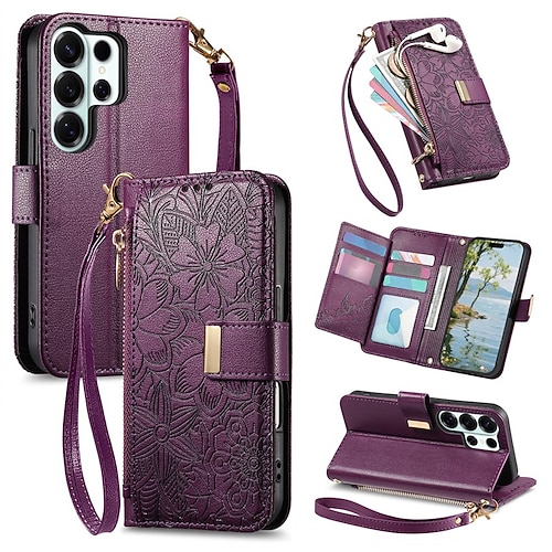 Handy Hülle Handyhüllen Für Samsung Galaxy S26 Ultra Plus S25 S24 S23 S22 S21 FE S21 Ultra Plus A54 A12 Brieftaschenhülle Flip-Cover Mit Ständer Kartenhalter Mit Handgelenkschlaufe Schmetterling