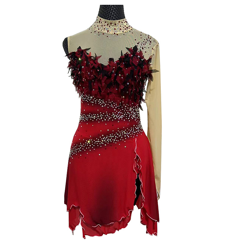 Figure Skating Dress Girls' Long Sleeves Competition Elegant Handmade Crystal Womens