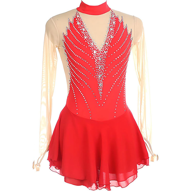 Figure Skating Dress Women's Girls' Ice Skating Dress Red Stretchy Training Competition Skating Wear Crystal / Rhinestone Sleeveless Ice Skating Figure Skating