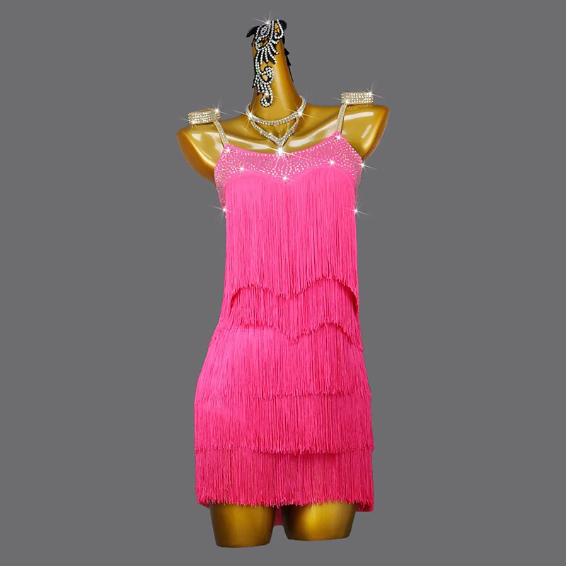 Latin Salsa Dance Dress Crystal / Rhinestone Tassel Pure Color Women's Performance Sleeveless Spandex