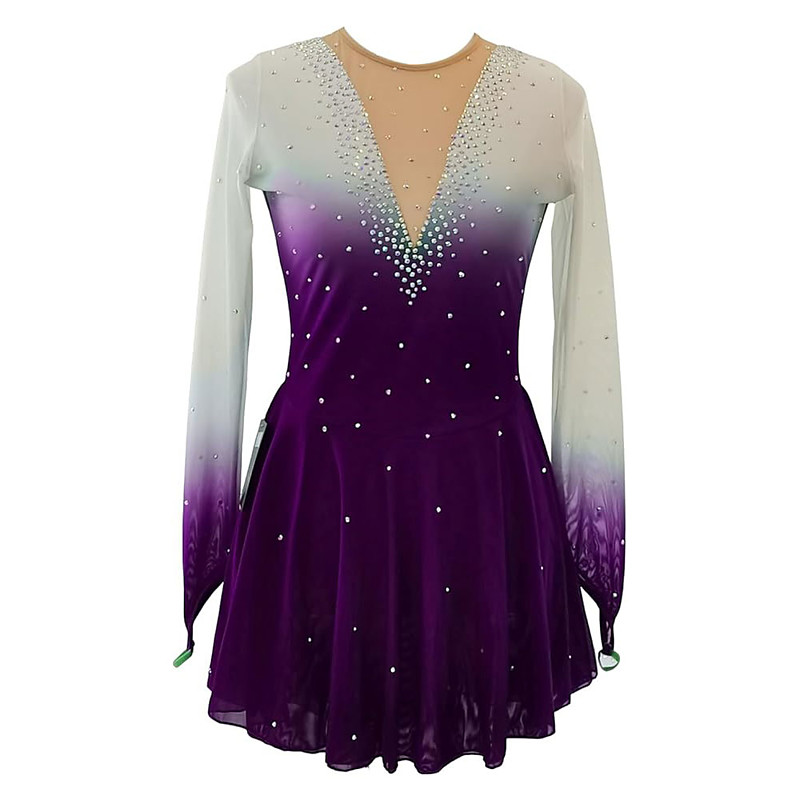 Figure Skating Dress Women's Girls' Ice Skating Dress Purple High Elasticity Training Competition Skating Wear Classic Crystal / Rhinestone Long Sleeve Ice Skating Figure Skating