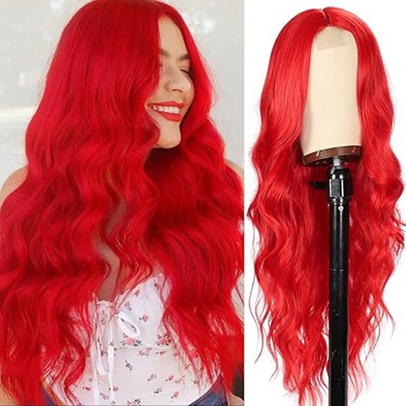 Long Wig for Women Wavy Curly Red Hair Wigs Synthetic Hair Replacement Wig Heat Resistant Hair Wig for Daily Party Use Christmas Party Wigs