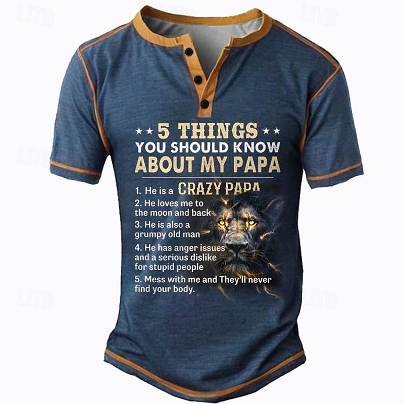 Mens Funny Papa Gift Graphic Tee - '5 Things You Should Know About My Protective Dad' Henley Short Sleeve T-Shirt