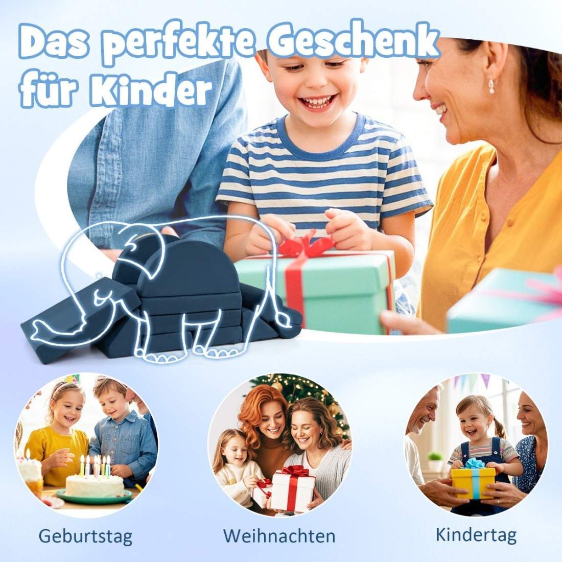 14-delers modulær barnesofa lekesofa laget av skum byggeklosser sofa for klatring & Krypende marineblått