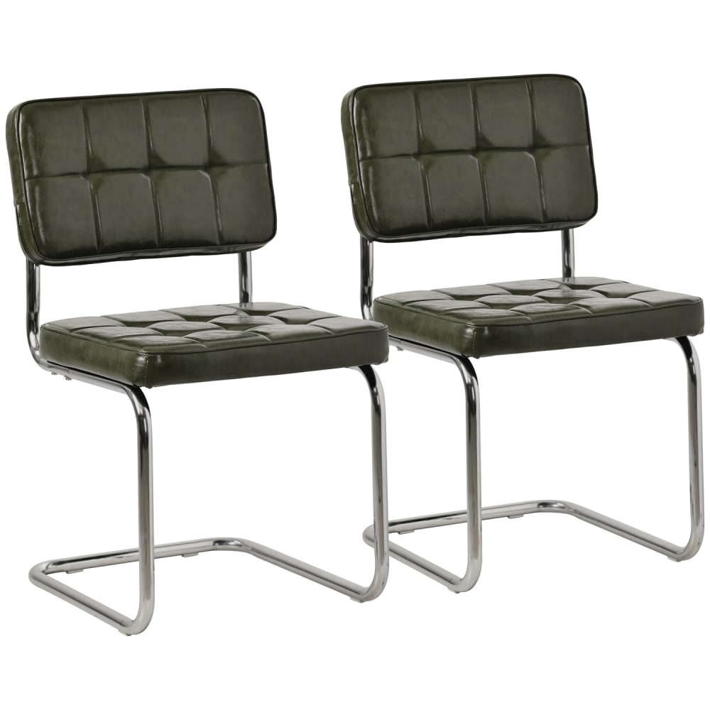 Set di 2 sedie cantilever in ecopelle verde, struttura in acciaio