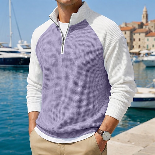 Per uomo Magliette Polo a Nido d'Ape Polo Casuale Formale Colletto fasciato Manica Lunga Moda Tinta unica Testurizzato Blocco di colore Bottoni Primavera Autunno Primavera Autunno Vestibilit