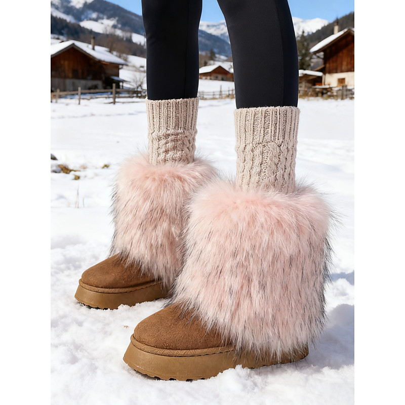 Women's Faux Fur Winter Boots with Fluffy Trim - Cozy and Stylish Cold Weather Footwear