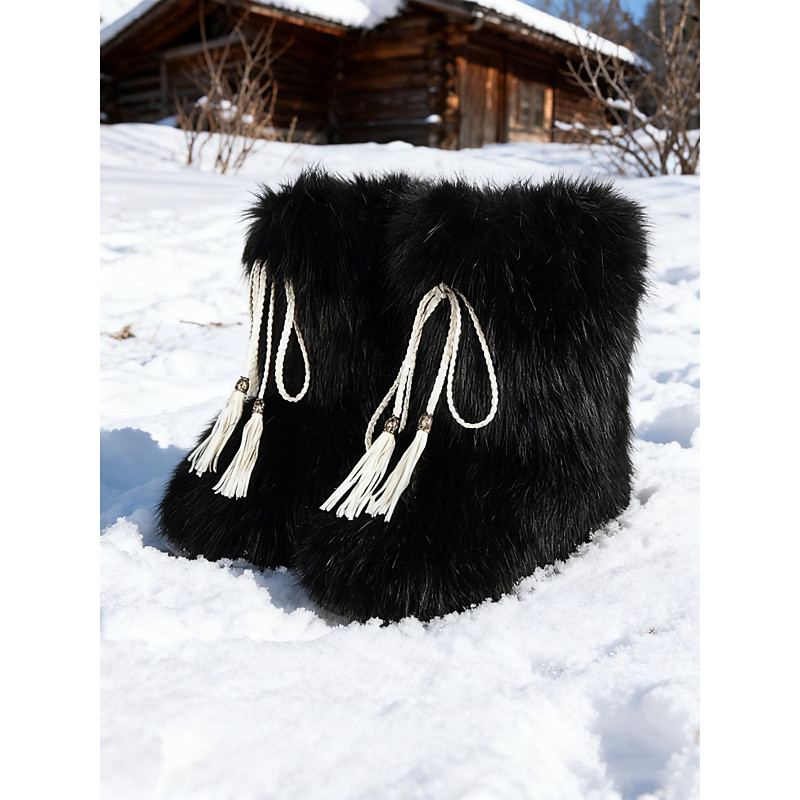 Women's Faux Fur Winter Boots – Stylish Tassel Detail, Warm and Cozy Snow Boots, Perfect for Cold Weather, Casual and Outdoor Wear