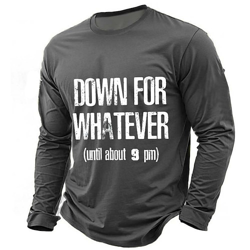 giù per qualsiasi cosa fino alle 21:00 circa maglietta divertente da uomo a maniche lunghe slogan sarcastico maglietta grafica grigio scuro abbigliamento abbigliamento s m l xl xxl xxxl