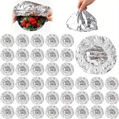 50/100 pezzi coperchi riutilizzabili per ciotole, coperchi elastici in alluminio per conservare gli alimenti a prova di perdite (fino a 350° f/177 °c), coperchi resistenti al calore per piatti per