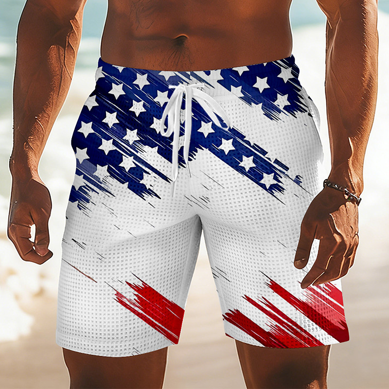 Independence Day Men's American US Flag Patriotic Fourth of July Waffle Shorts Sweat Shorts Casual Shorts Mid Waist Fashion Casual Holiday Festival Elastic Drawstring Waist Shorts with Pockets