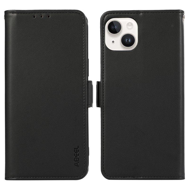 ABEEL iPhone 14 Plus Plånboksfodral Flip Konstläder med RFID-Skydd - Svart