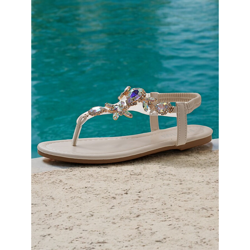 Women's Green Rhinestone Embellished T-Strap Sandals with Elastic Ankle Strap – Elegant Summer Footwear for Beach, Parties, or Casual Wear