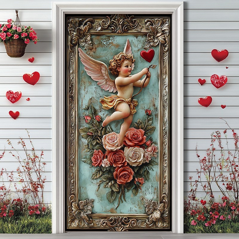 Valentine's Day Door Decorations Door Covers Garden Theme Door Tapestry Door Curtain Decoration Backdrop Indoor/Outdoor Door Banner for Front Door Farmhouse