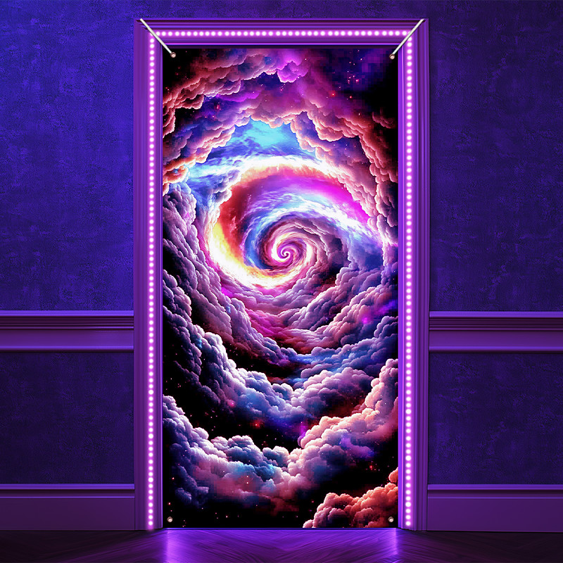 Blacklight Door Decorations Door Covers Glow in the Dark Universe Galaxy Door Tapestry Door Curtain Decoration Backdrop Indoor/Outdoor Door Banner for Front Door Farmhouse