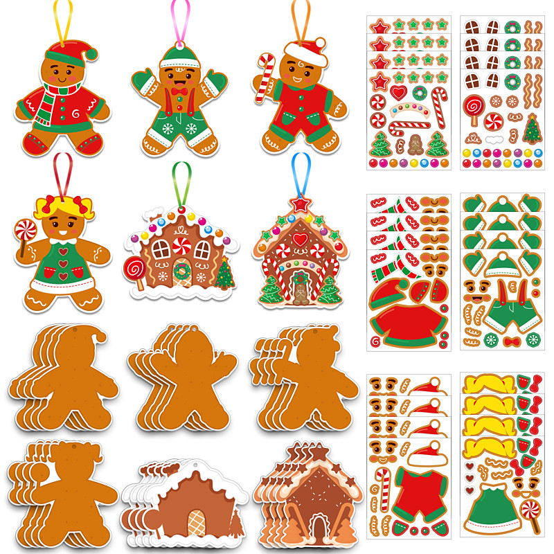 24pcs Christmas Stickers Set with Gingerbread, Santa, Elves Reindeer - Vibrant DIY Holiday Tree Decorations, Card Gift Decor, Reusable-Style Single-Use Glossy Ornaments for Children's Crafts