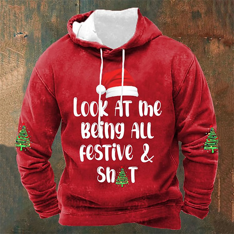 Christmas Men's Graphic Christmas Tree Hat Hoodie Printed Hoodie Hooded sweatshirt Fashion Streetwear Holiday Casual Vintage Retro Hooded Going out Festival Black Red Green Gray 3D Print Spring Fall